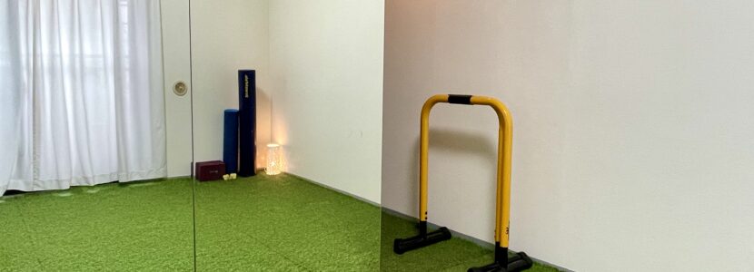 Full Body Conditioningでは、心身ともにリラックスしていただけるよう、床一面に芝生を敷いたアットホームな空間デザインにしています。芝生の上で大の字で寝た時の開放感は最高ですよ!